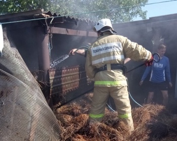 Новости » Общество: В Ленинском районе сильно горели тюки сена