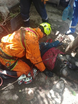 По прибытии стало известно, что женщина находится в бетонированной яме, на глубине 5 метров. К месту происшествия также была вызвана бригада скорой медицинской помощи. С использованием изолирующих костюмов, средств индивидуальной защиты и снаряжения для работы на высоте, пострадавшая была эвакуирована из ямы и передана медикам для оказания медицинской помощи. Находилась в сознании. Операция по извлечению женщины заняла около 15 минут.