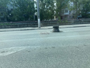 В Керчи на ул. Еременко, напротив здания КРЭС, отремонтировали яму на дороге, в месте где находится люк, - передает Керчь.ФМ.  Для водителей место обозначили покрышками, которые сложили друг на друга.
