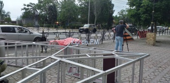 Трибуну со звездой устанавливают на Кирова в Керчи