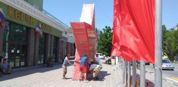 В Керчи 10 июня на улице Кирова устанавливают трибуну со звездой. Рядом размещают красные флаги и надписи «Победа». Работы начались утром, - передает Керчь.ФМ