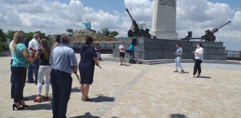 Цветы возложили к Обелиску Славы. На нем присутствовали представители власти Керчи. На территорию Обелиска до сих пор простых людей не пускают, обелиск огорожен забором в связи с продолжением ремонтных работ.