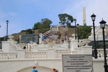 На Митридасткой лестнице провести работ еще остается достаточно много. Срок завершения работ 2022 год, но подрядчик планирует сдать объект раньше срока.