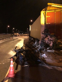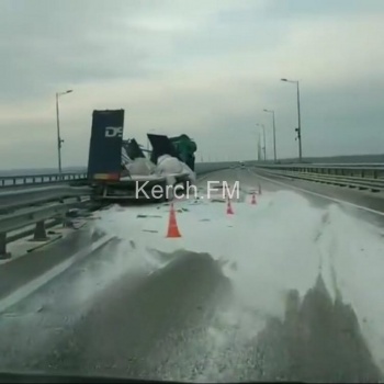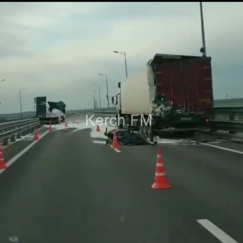 На Крымском мосту столкнулись две фуры (видео)