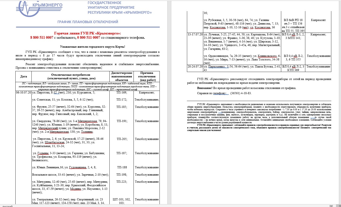 ГУП РК «Крымэнерго» сообщает о том, что в связи с плановым ремонтом электрооборудования в июле в период с 8 до 17 часов будут происходить отключения линий электропередачи согласно нижеприведенному графику, - передает Керчь.ФМ.