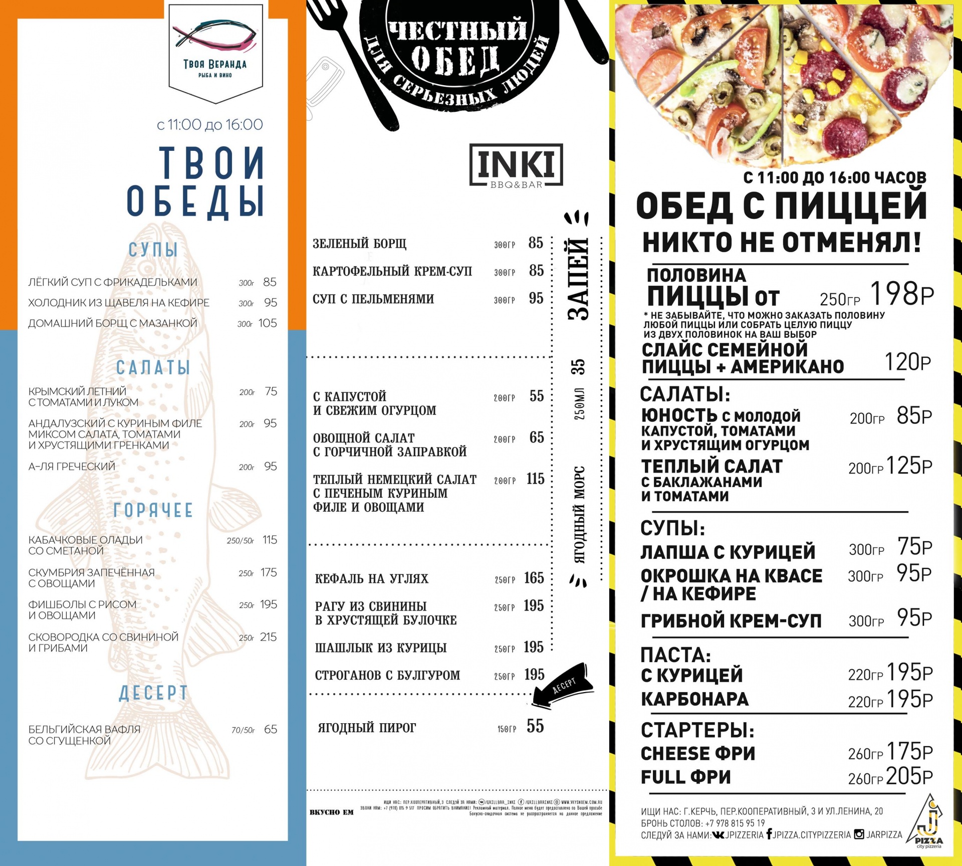 Твоя Веранда. Рыба и вино, INKI.BBQ&BAR и городские пиццерии J-PIZZA уже проверили - работает ;)