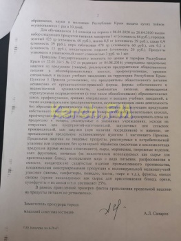 Чтобы до конца разобраться в этом вопросе и убедиться, что цены предприятия-изготовителя и цены продуктов в сухом пайке отличаются не более, чем на 25%, редакция все же запросила прокуратуру материалы для ознакомления и сравнения цен изготовителя с ценами пайка. Для этого в Прокуратуру Крыма и по подведомственности в Прокуратуру Керчи редакцией было направлено заявление.