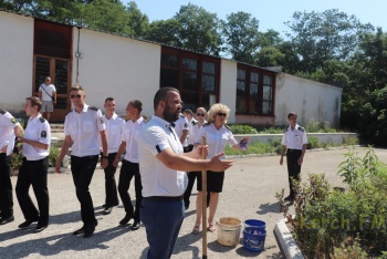 Сегодня, 4 июля, после сдачи всех экзаменов и дипломов, перед торжественным вручением документов об окончании КГМТУ, курсанты кафедры судовождения морского факультета высадили традиционное хвойное дерево во дворе кафедры судовождения и промышленного рыболовства. Традиция зародилась недавно, но будущие капитаны верят, что скоро в альма-матер будет свой хвойный рай, а рост дерева связан с карьерным ростом тех, кто его высаживал. На мероприятие пригласили журналистов Керчь.ФМ.
