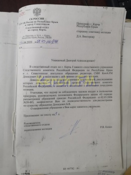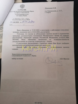 9 апреля следственный отдел по г. Керчи сообщил письмом редакции Керчь.ФМ, что надзор за соблюдением законов входит в полномочия прокурора и перенаправил свою жалобу в керченскую прокуратуру. И это несмотря на то, что в жалобе редакция предусматривала в действиях сотрудника полиции признаки состава преступления. В соответствии с п. «в» ч. 2 ст. 151 УПК РФ предварительное следствие производится следователями Следственного комитета Российской Федерации - по уголовным делам о преступлениях, совершенных должностными лицами органов внутренних дел.