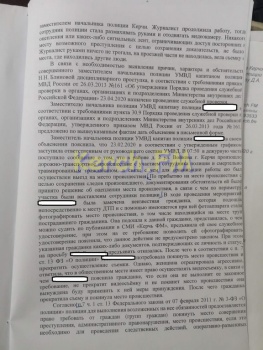 Тогда же, 23 февраля, еще до того, как были поданы жалобы, в статье журналист отметил, сотрудник полиции, выехавший на место происшествия, препятствовал работе журналиста. Показать свое удостоверение отказалась, сказав устно, что она занимает пост заместителя начальника полиции. В своих объяснениях представившаяся замначальника полиции не только предъявила удостоверение, представилась, но и отвечала журналисту по поводу невозможности его фотографирования. То есть, слова журналиста против слов полицейского.