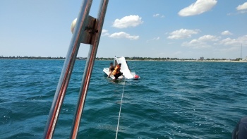 Кроме того, в 13:30 в районе пляжа Лазурный берег г. Евпатория, на расстоянии 450 метров от берега, дежурная смена Евпаторийского АСО ГКУ РК «КРЫМ-СПАС» обнаружила 2 женщин на прогулочном катамаране, которых порывами ветра уносит в море.