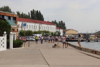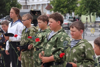 В это время в сквере у морвокзала прошел молебен у бюста адмирала Ушакова. Организации подростков в милитари-форме стояли в почетном карауле.