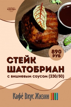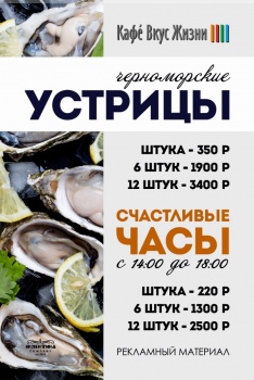 Вкусные новинки для гостей кафе «Вкус Жизни»: свежий улов устриц, деликатесные телячьи щечки и сочный стейк Шатобриан. Спецпредложения ограничены!