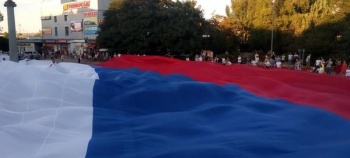 Новости » Общество: В центре Керчи развернули огромный флаг России