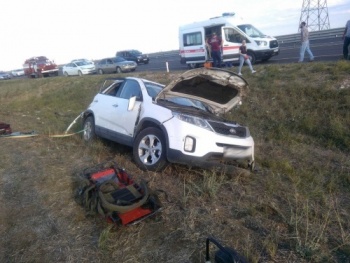 По прибытии на место дорожно-транспортного происшествия стало известно, что при обгоне автомобиля Volkswagen Passat, водитель автомобиля Kia Sorento не справился с управлением и допустил касательное, боковое столкновение с последующим опрокидыванием на крышу.