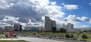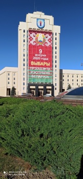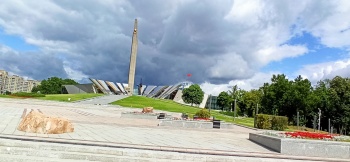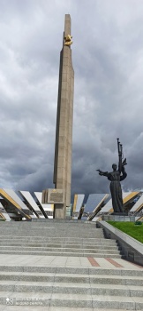 Минск прежде всего, поразил своей грандиозной архитектурой, огромные тротуары, широкие улицы и проспекты. Прохожие посоветовали пройтись по центру и сходить в музей великой отечественной войны, что мы с Анатолием и решили сделать. Мы вышли в центр города на огромную площадь, где себя чувствуешь лилипутом, все вокруг просто огроменное. По дороге, я купил газету с местными новостями и узнал, что в Беларуси скоро выборы, часть кандидатов в президенты или недопущены или сидят под следствием, из-за незадекларированных доходов, имущества и т.д скрытых при подаче заявки на выборы. Причем в Беларуси так и остались все те же названия, что и при СССР, КГБ, милиция. Причем я думаю белорусам забавно читать русские названия и наоборот русским белоруские, т. к у них милиция - это мiлiцыя, выборы-выбАры и так во всем языке, все вроде и похоже и не похоже на русский или украинский языки. Сам очень чистый, в парках есть туалеты, люди очень приветливые и доброжелательные.