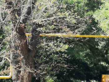 Несколько месяцев уже исполнилось траншее на дороге, в 100 метров от нее засохшее огромное дерево нависло над газовой трубой, а между ними висит оборванный провод. И это все стометровый участок на улице Кавказская, - передает Керчь.ФМ.