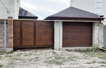 • Гаражные секционные ворота RenoMatic с приводом и панелями М-гофр. Полотно ворот из секций толщиной 42 мм. Поверхность Woodgrain (6 цветов) или Decocolor (3 варианта декоративной отделки). *Цена комплекта ворот от 54 500 руб.