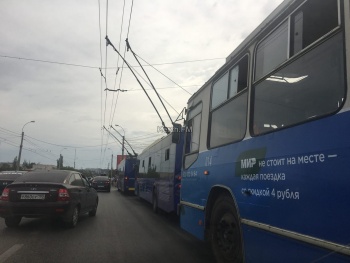 Пострадавших нет, пробки тоже. А вот троллейбусы прекратили свое движение и собрались на остановке.