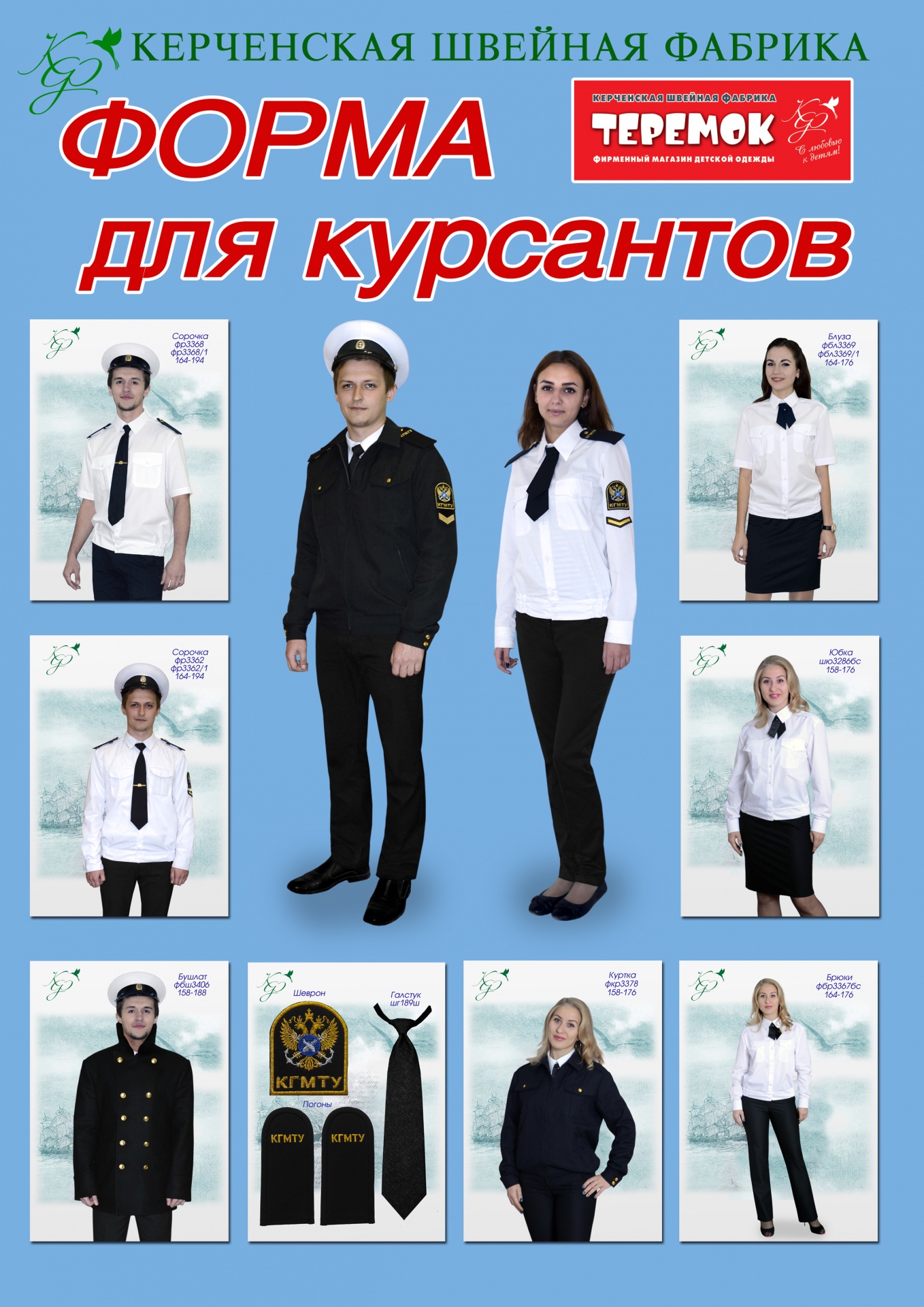 В магазине представлена форменная одежда для курсантов от Керченской швейной фабрики.