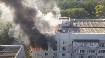 «Вчера поступило сообщение о хлопке бытового газа на кухне двухкомнатной квартиры на девятом этаже с дальнейшем возгоранием на 9-м, 10-м этажах. Площадь пожара 40 кв.м. Впоследствии произошло обрушение межэтажных перекрытий между 9 и 10 этажами. На пожаре пострадала женщина 1969 г.р. Эвакуировано 115 человек, из них 10 детей. Жители дома размещены в санатории «Москва Крым» и хостел «Вулкан»