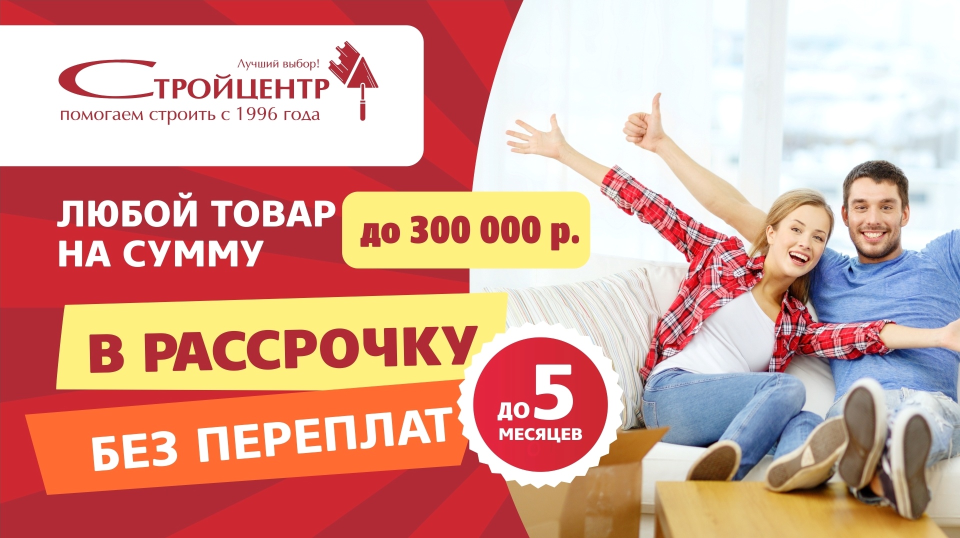 В магазине " Стройцентр" по адресу ул. Маршала Еременко, 7Б можно приобрести товар в рассрочку, без переплат.