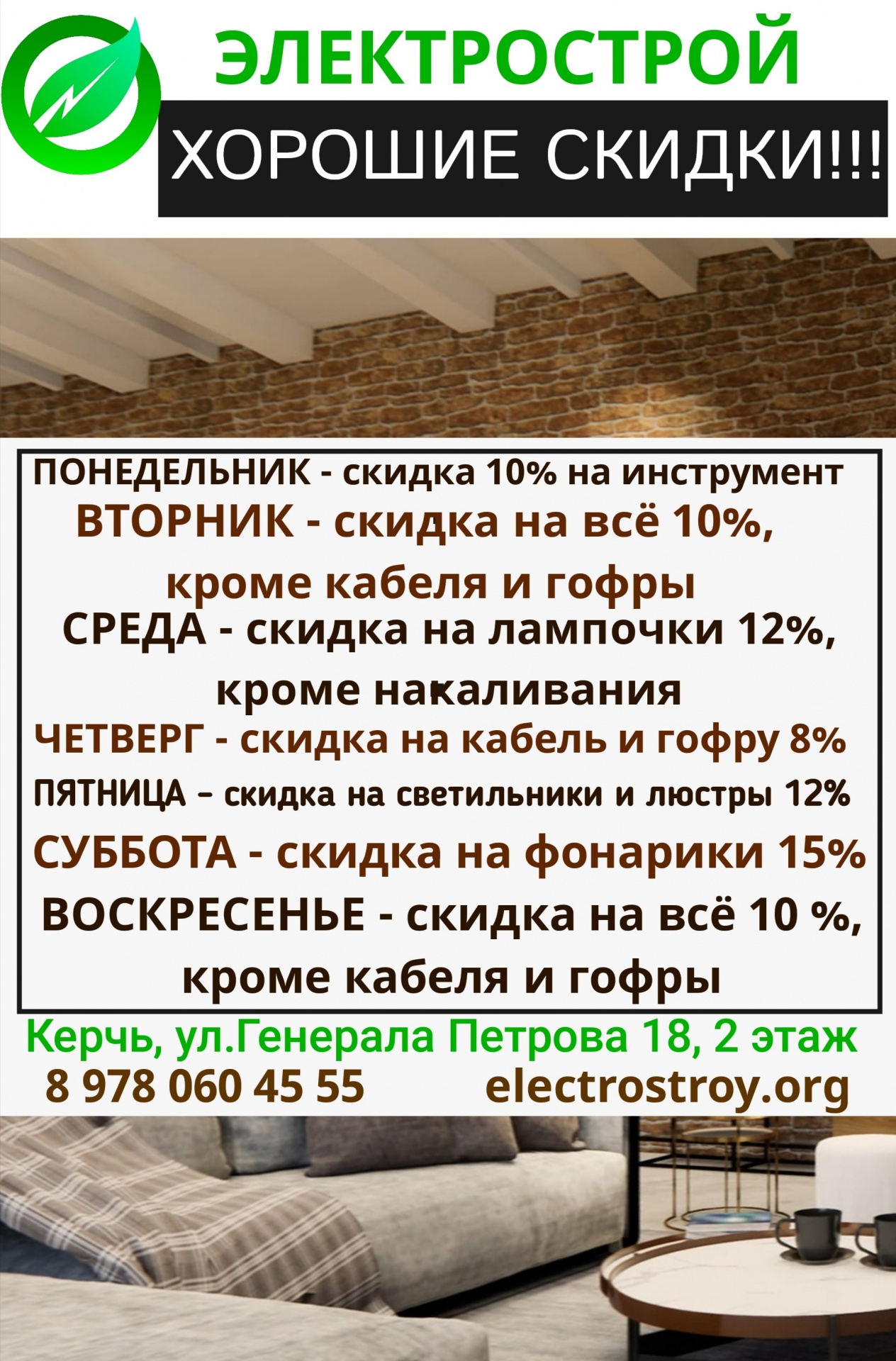 Воскресенье - скидки на все 10% (кроме гофры и кабеля)