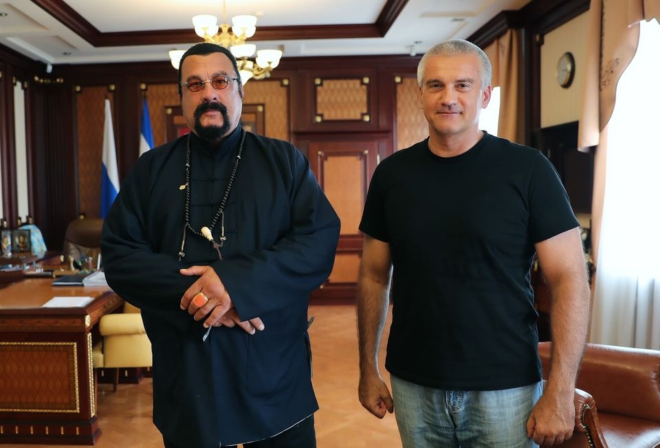 «Рад приветствовать на крымской земле всемирно известного актера, музыканта, мастера боевых искусств и спецпредставителя МИД России по вопросам российско-американских гуманитарных отношений Стивена Сигала», - прокомментировал встречу Аксенов.