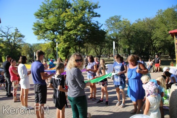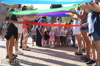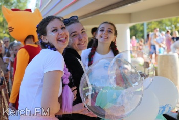 У «Крымского моста» расположилась сцена, где выступают юные артисты коллективов города. У детской площадки аниматоры подготовили праздничную программу.