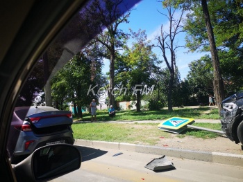В Керчи днем 13 сентября, около остановки «Парковая» на пешеходном переходе произошла авария. Столкнулись «БМВ» и «КИА». Также один из автомобилей оказался на обочине и снес дорожный знак, - передает Керчь.ФМ.