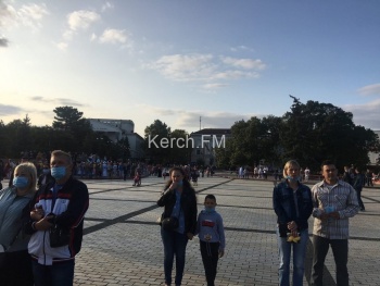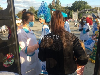 В Керчи 19 сентября на площади Ленина проходит фестиваль «Дружба народов». НА огражденную территорию к сцене пускают после измерения температуры, всем раздают бесплатно маски. Желающих пройти к сцене мало, - передает Керчь.ФМ