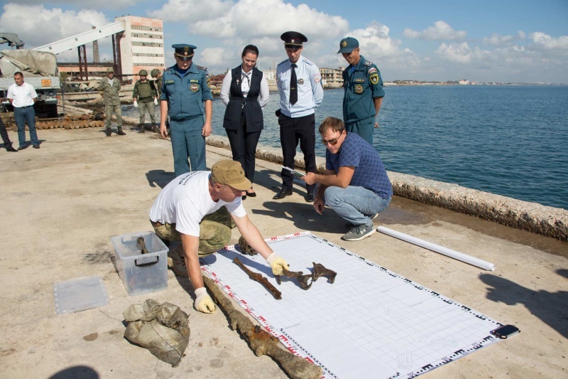 Параллельно с процессом разминирования теплохода «Жан Жорес» группа водолазов-пиротехников извлекали из-под и ящиков с патронами останки членов экипажа с оружием, личными вещами и элементами обмундирования, найденные в разломе 4-го трюма в ходе грунто-размывочных работ.