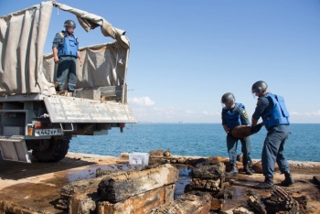 Сводный отряд из реагирующих подразделений крымского и севастопольского Главных управлений МЧС России продолжает подводные мероприятия на затопленном теплоходе «Жан Жорес» по обезвреживанию взрывоопасных предметов времен ВОВ. Помимо авиабомб, детонаторов, артиллерийских снарядов и прочих боеприпасов группа водолазов-пиротехников также обнаружила на судне останки членов экипажа. Об этом сообщает пресс-служба МЧС Крыма, - передает Керчь.ФМ.
