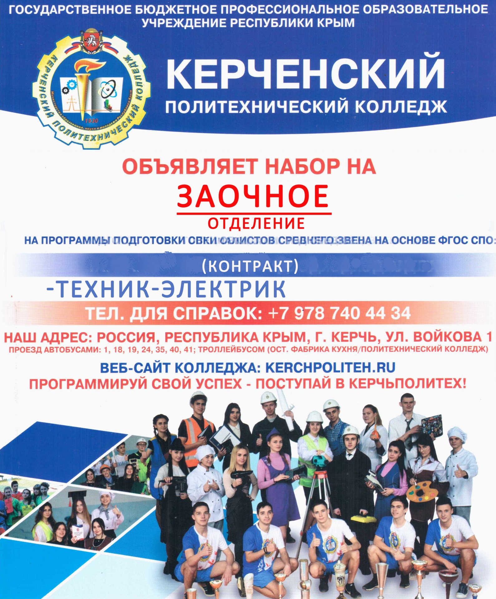 «КЕРЧЕНСКИЙ ПОЛИТЕХНИЧЕСКИЙ КОЛЛЕДЖ» ПРОДОЛЖАЕТ НАБОР НА ЗАОЧНОЕ ОТДЕЛЕНИЕ