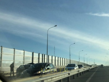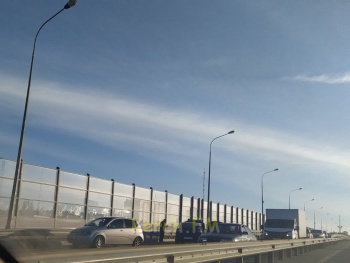 Направление на путепроводе в сторону города затруднено.