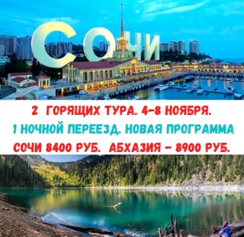 4 ноября - 8 ноября (5 дней/4 ночи). Один ночной переезд из Абхазии в Керчь