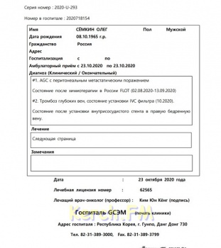Мы с мамой забрали отца и увезли в Сеул - туда, где вылечили маму. Клиника в Сеуле его приняла, дала гарантию на положительные результаты лечения. По финансам мы все лечение «тянули» сами - продали родительскую квартиру, я взяла кредит, выставили на продажу машину. Но после московских химий у него начался тромбоз, поэтому лечение онкологии в Сеуле сопряжено с лечением тромбоза. Это намного удорожало стоимость.