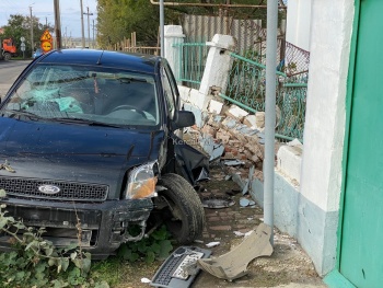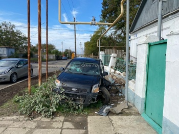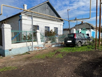 От удара автомобиль «Форд» врезалась в забор жилого частного дома.