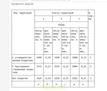 Что касается нормативов уборки, то они были установлены задолго до создания ЖилсервисКерчь и действуют по всей Российской Федерации. Называется документ Постановление минтруда рф от 24.06.96 №38 «Нормы обслуживания для рабочих, занятых на работах по санитарному содержанию домовладений».