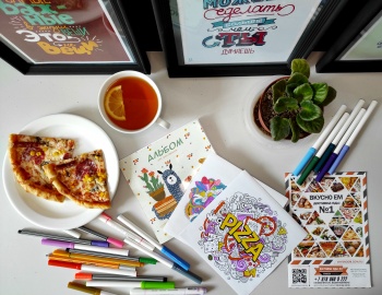 Краски, фломастеры, карандаши, альбом для рисования или картинка антистресс - отличный вариант отдыха! А что может сделать его лучше? Только кружка горячего витаминного чая и любимая вкусная еда, которую мы привезём прямо к вам!