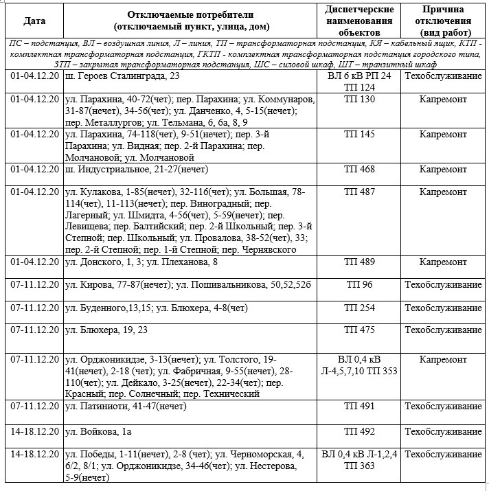 В связи с плановым ремонтом электрооборудования в декабре в период с 8 до 17 часов будут происходить отключения линий электропередачи согласно нижеприведенному графику. Об этом сообщает ГУП РК «Крымэнерго», - передает Керчь.ФМ.
