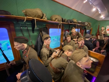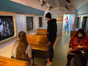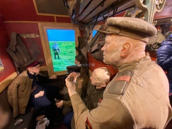 В Керчь 17 ноября прибыла уникальная иммерсивная выставка «Поезд Победы». Журналисты Керчь.ФМ одними из первых посетили ее. На входе в поезд волонтеры выдали одноразовые перчатки, чтобы желающие могли прикоснуться к экспозиции. Многие вещи в выставке оригинальные и были куплены на разных интернет площадках.