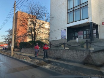 Напомним, на выходных здесь наносили дорожную разметку. Керчане жаловались, что из-за благоустройства тротуара людям приходится ходить по проезжей части.