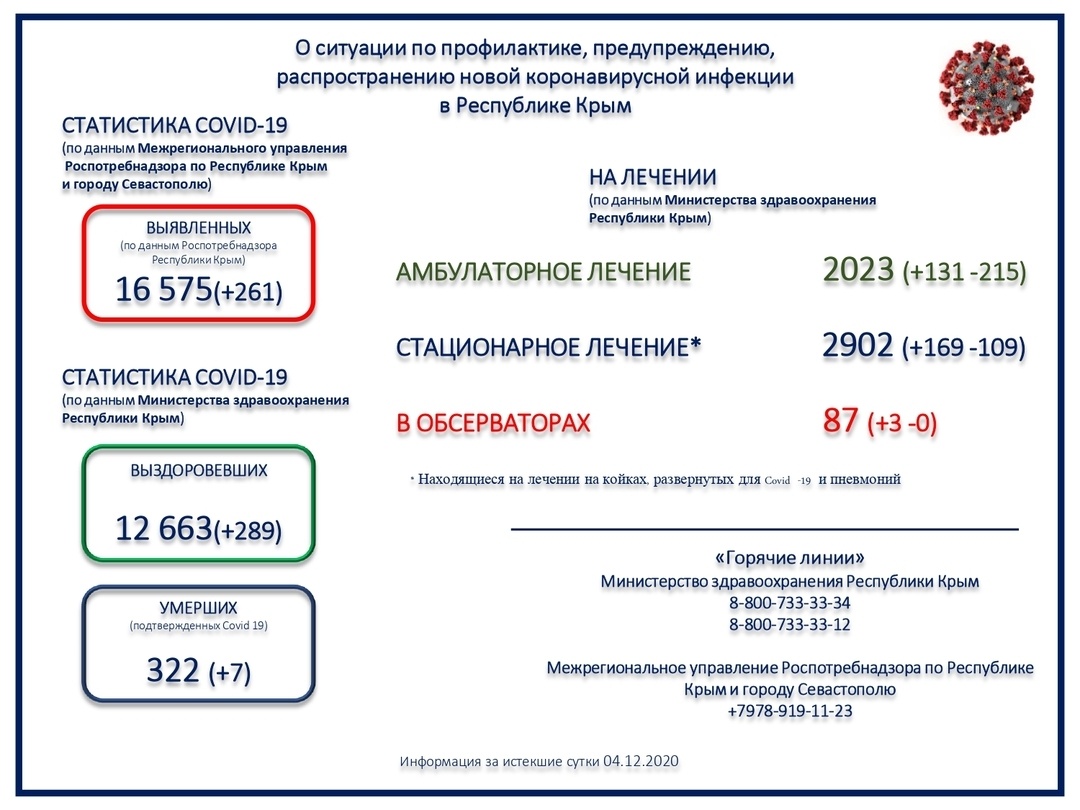 Межрегиональным управлением Роспотребнадзора по Республике Крым и городу Севастополю всего выявлено 16575 положительных на Covid-19. Выписано с выздоровлением - 12663.