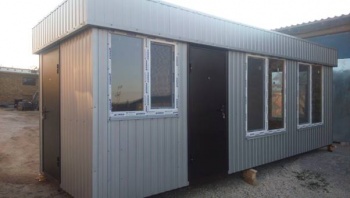 - Бытовка 6000х2500х2500 мм с пластиковыми окнами, линолеумом, электричеством и металлической дверью.