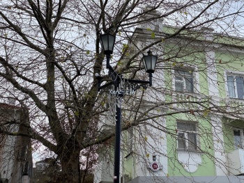 Сильный ветер разбил плафон на фонарном столбе в Керчи
