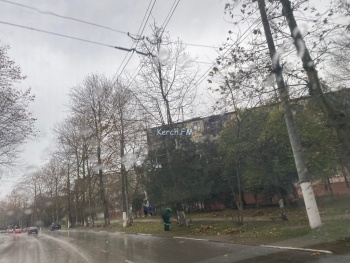В Керчи, 9 декабря по улице Горького, сотрудники УЖКХ убирали листву с газонов. Как Керчь.ФМ рассказал постоянный читатель, убирать улицу рабочие начали с самого утра, когда на улице шел дождь.