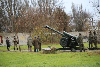 Военные установили артиллерийское орудие, из которого произвели холостой залп.