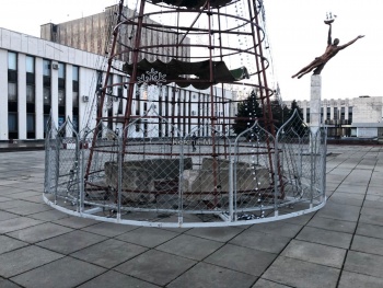 Каркас оградили и повесили на него иллюминацию. Но веток здесь так и не появилось. Керчане надеются, что к 31 числу все же хватит времени, чтобы елку "дособирали".