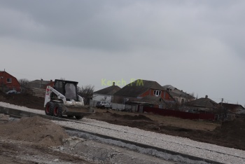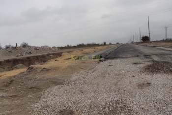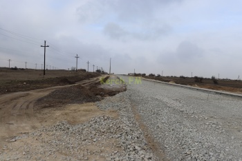 После асфальтированного участка идет щебенка до примерного пересечения с переулком Егорова. Там начинается участок «степь и барханы», правда он небольшой, метров 300 на глазомер нестроителя. На этом участке работал трактор к нему двумя самосвалами подвозили землю, чтоб сформировать уровень будущей дороги. Дальше от примерного пересечения с улицей Левищева щебенку раскидывает трактор. В районе уже улицы Алиме Абденнановой на Стройгородке на дороге работали дорожные рабочие и еще 3 трактора копали обочины, ровняли щебенку.